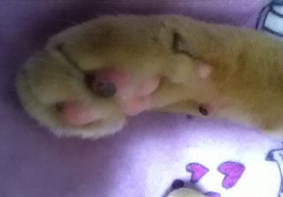 柔らかかった肉球も傷だらけです。