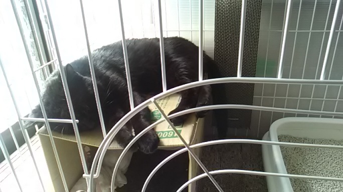 先ずは、ケージに入ってもらい、ソッとしておくことにしました。