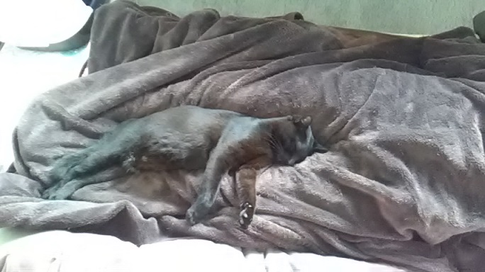 そして、お昼寝は私の足の間、夜、就寝する時は、私の太腿を枕にして寝ています。