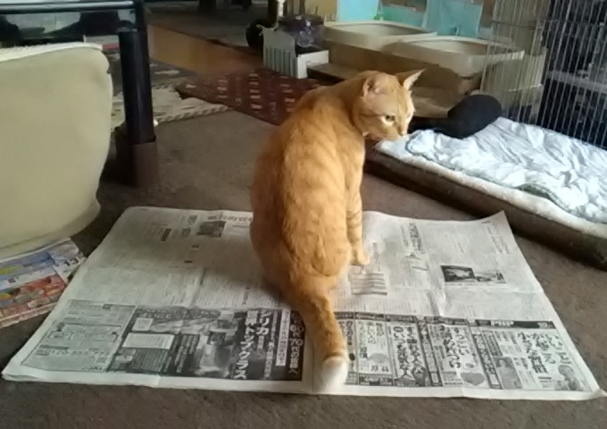 新聞の上に乗るだけならまだしも、まったり毛繕いしたり、ゴロゴロしたりするのが困ってしまいます。