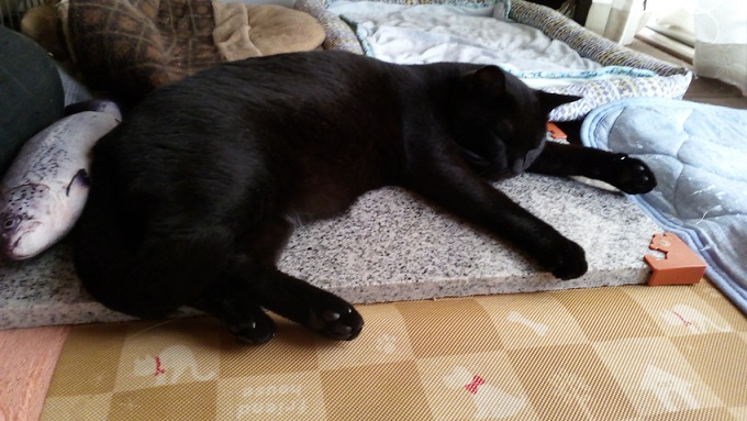 前回の測定時の4.45㎏よりも100g減っていましたが、急に暑くなったことによる暑さバテの所為とドライフードの選り好み(偏食傾向)の所為かな~と思っています。