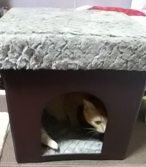 今使ってる段ボール製のハウスと似ているので、イイ感じだと人間は思っていますが、猫達が使ってくれるかが問題です…(;-`д´-)ゞンー…