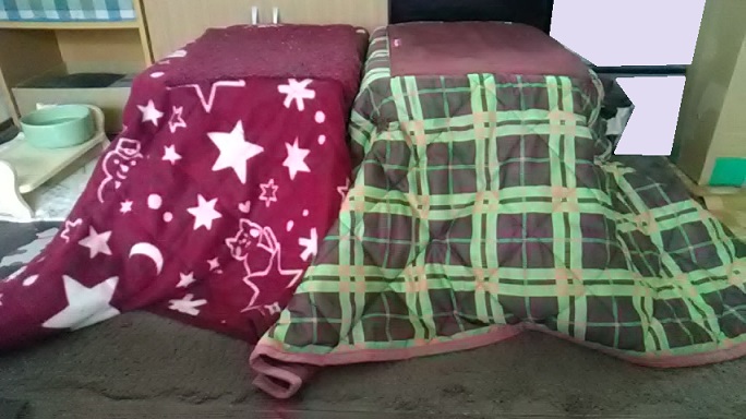 そこで、以前、購入した春秋用のこたつ布団に変更する事にしました。