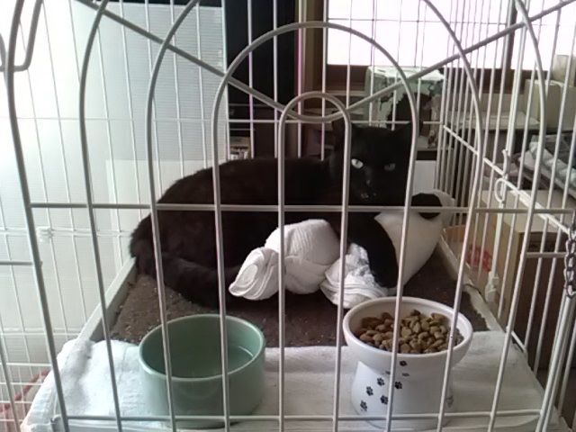 隔離生活中の眞零さんですが、まだまだ朝夕は寒いのでペット用ヒーターを利用しています。