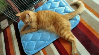 実は、接触冷感アイテムはジェルマットを購入したんですが、虎治さん購入後、部屋の床に置いたら直ぐ爪で穴を開けてしまいました。