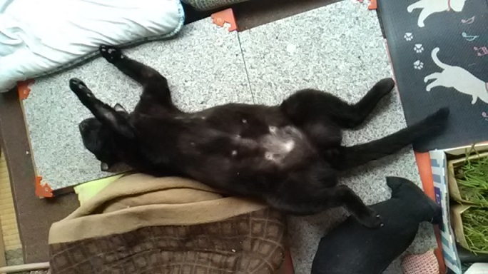 虎徹さん、今日も動物病院から帰宅後は、気持ち良さそうにヘソ天でお昼寝をしていました。