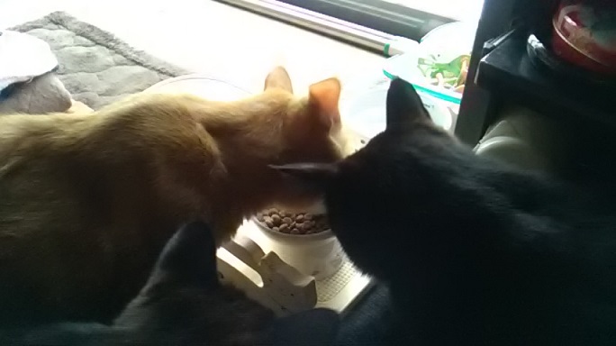 一斉にフードボウルに寄ってきました~ฅ(=✧ω✧=)ฅニャニャーン✧