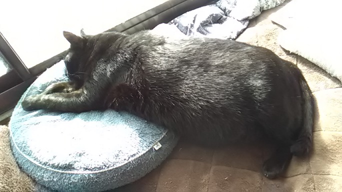 さて、最近の虎徹さんは、益々身が軽くなり、ジャンプ力もUPし、毎晩、軽々とベッドに登ってきて、私と一緒に寝ています。