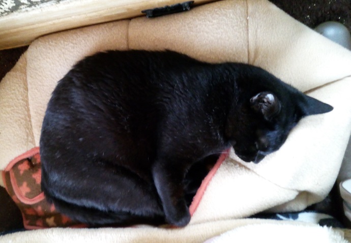 診察を終え、お家に帰ってきた眞零さんは猫こたつに隠れてしまいましたが、真夜中には私の布団の上に来ていっしょに寝てくれました。