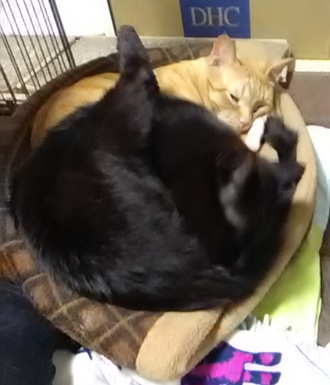 独りで寝たり、他の猫と一緒に寝たりと、好きなように寝転がっています~♫