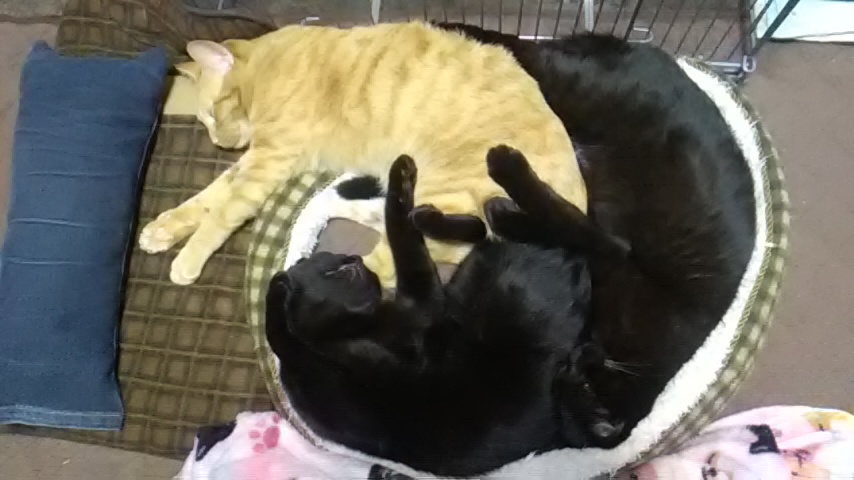 さてさて、鍵さんがエリザベスを外すと、鋼さんが夜は鍵さんと寝るようになりました~ゴロニャン ~(=^・・^)(^・・^=)~ ナカヨシ