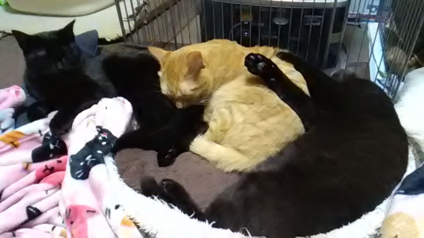 今は、ご飯の取り合いをするでもなく、仲良くご飯を食べ、一緒に寝ています。