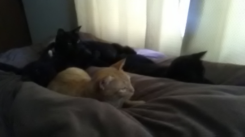 寝始めは違う場所で寝ているのに、いつのまにか4匹が全員集合しています~ゴロニャン ~(=^・・^)(=^‥^=)(=^‥^=)(^・・^=)~ ナカヨシ