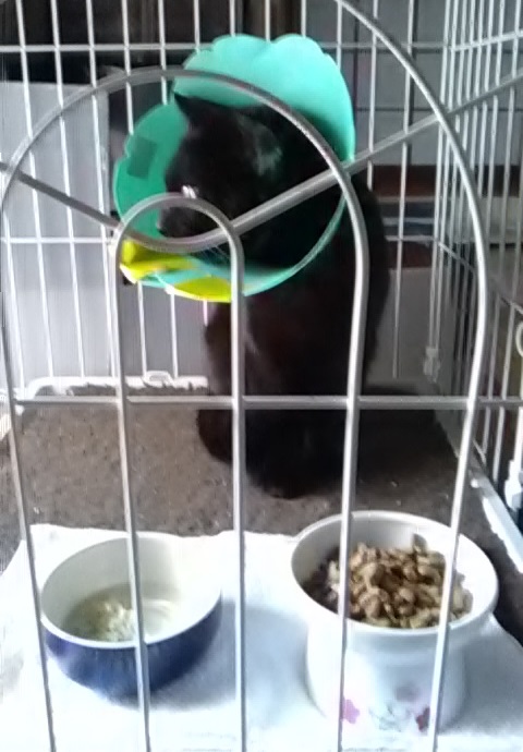 ただ、雑菌が内部で繁殖するのを防ぐ為に、傷口は敢えて縫合しなかったので、カラーをつける事になりました。