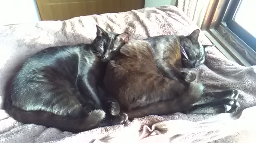 兄弟仲良く日向ぼっこして寝てます~ゴロニャン ~(=^・・^)(^・・^=)~ ナカヨシ