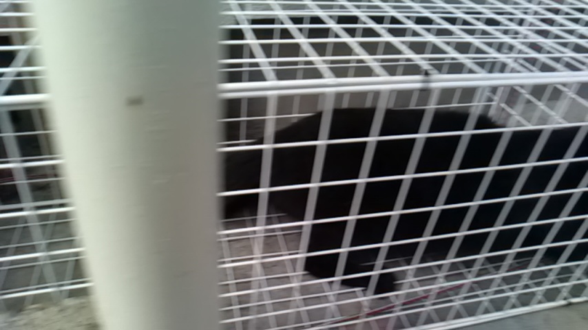かなり警戒しながらへっぴり腰で捕獲器に近づいてきました。