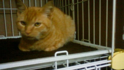 虎治さんを捕獲してから1週間、体を触らせてくれるようになったし、これなら病院へ連れて行ける だろうと…。