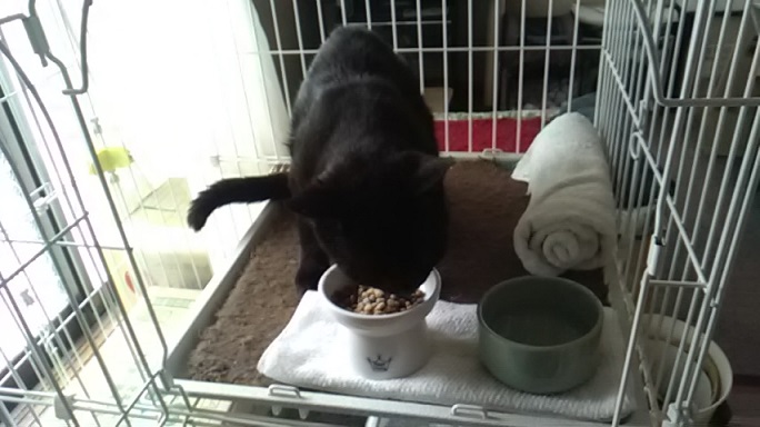 その後、昼前に覗いて見ると、カリカリを食べたり、水を飲んだ感じがしないので、茹でた鶏むね肉とスープを持ってくると美味しそうにペロッと食べてくれました。