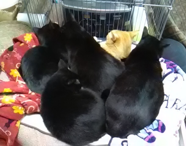 まだまだ先住猫との猫関係は微妙なとこもありますが、全猫5匹、仲良く家猫生活を満喫しています。