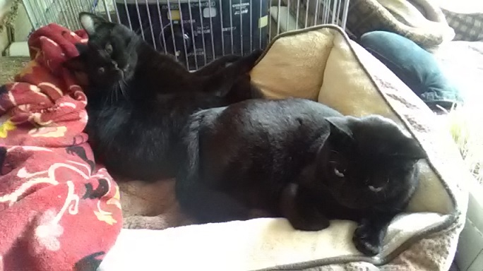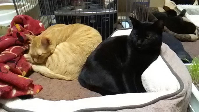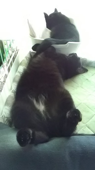それから、今までは少し離れた所で寝ていましたが、スクエアベッドに兄弟仲良く一緒に寝るようになってきました~ゴロニャン ~(=^・・^)(^・・^=)~ ナカヨシ