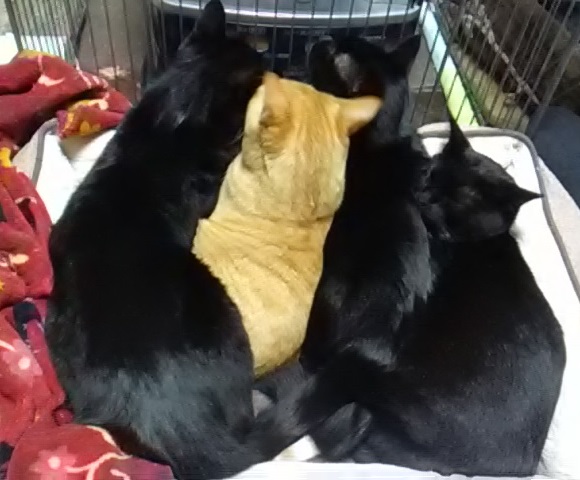 ギュウギュウ状態ですが、4匹仲良くスクエアベッドで暖をとってくれている姿を見て、ホッとしました。