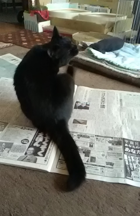 それでも、猫達が新聞の上で、まったり毛繕いしたりする姿は可愛らしくって、ついつい見入ってしまいます~=^_^=