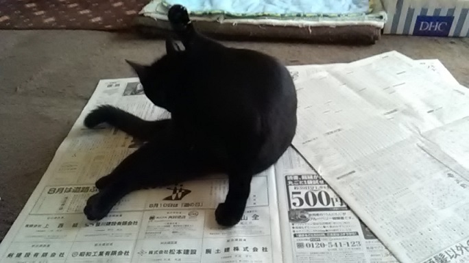 新聞の上に乗るだけならまだしも、まったり毛繕いしたり、ゴロゴロしたりするのが困ってしまいます。