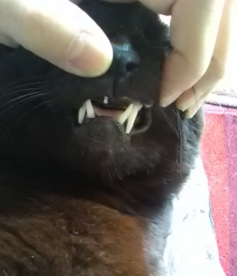 とりあえず、他の猫の口の中を見ると、門歯は上下とも生えています。