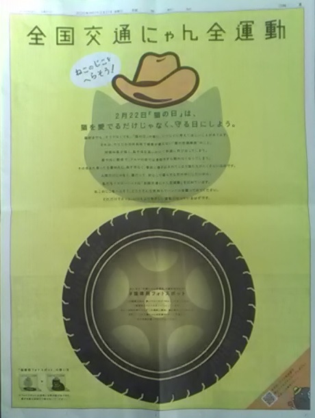 今朝の読売新聞の広告でイエローハットさんの『全国交通にゃん全運動2020』を知りました~ฅ(=✧ω✧=)ฅニャニャーン✧