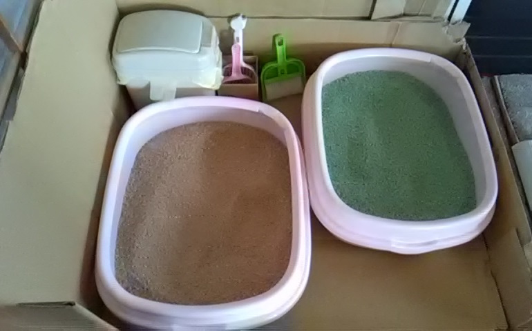 今のところ、猫が気に入ってる木系の猫砂とお茶系の砂を使用する事にしました。