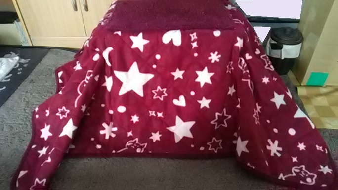 という事で、猫こたつを出しました~ミャァ♪┏━o(=´∇`=)o━┓ネーコハコタツデマルクナル♪