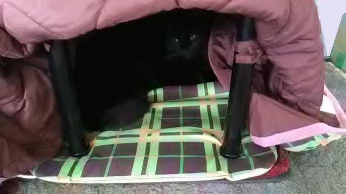 実は、明け方や午前中は、猫こたつの中に入っていたり、上に乗っていたりするので、なかなか片付ける事ができません。