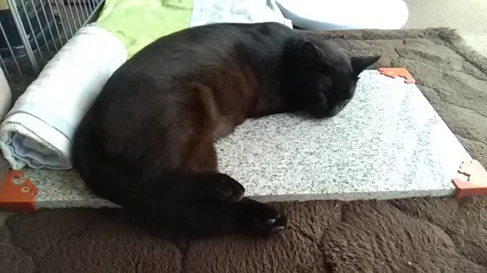 夏の暑さ対策、お店に行くと色々あって迷いますが、御影石プレートはうちの猫達のお気に入りです~=^_^=