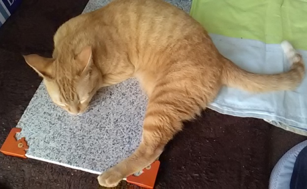 そこで、今年も、猫の暑さ対策の為、人が触ってもひんやりと冷たい御影石プレートを出しました~ゴロニャン ~(=^・・^)