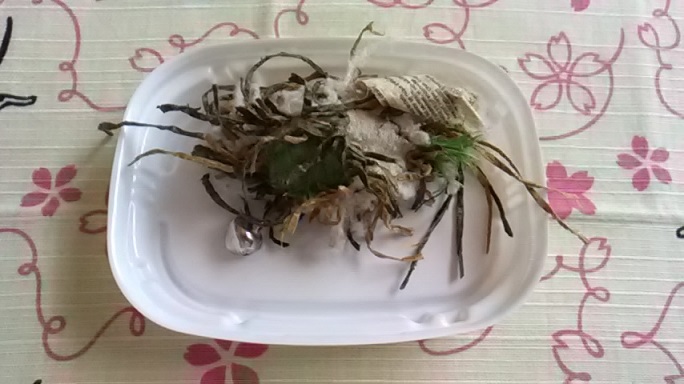 布でくるんで、中身が出ないように改良しました。
