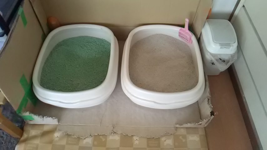 うちの猫のトイレは1階も2階も、段ボールの囲いの中にあります。