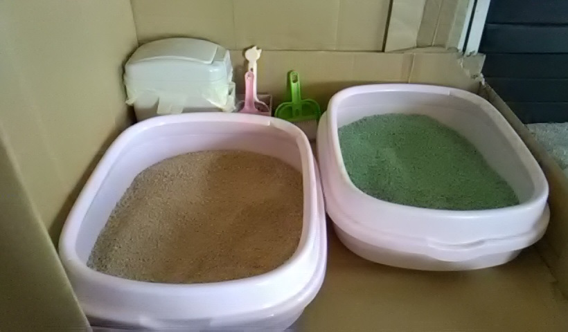 さて、鋼さん、2階では粗相しないので、1階のトイレの並べ方が悪いのかと思って、2階と同じ並べ方に替えてみました。