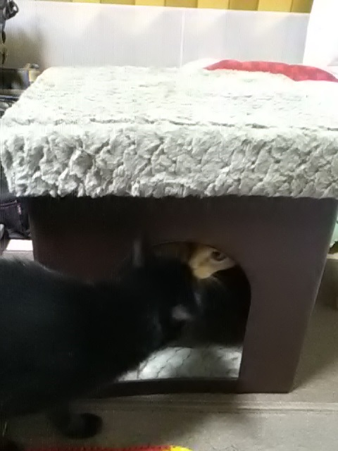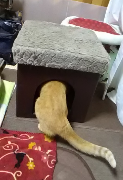 今使ってる段ボール製のハウスと似ているので、イイ感じだと人間は思っていますが、猫達が使ってくれるかが問題です…(;-`д´-)ゞンー…
