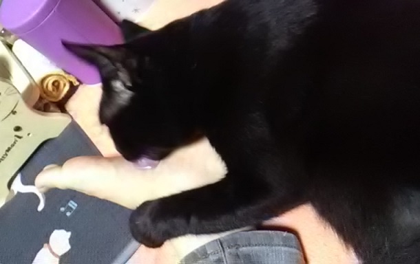 さて、イベルメクチンを投薬してから元気になった虎徹さん、おもちゃに反応するようになり、おもちゃで遊んだり、甘えてきて膝に乗ったりするようになりました。